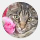 Cute Tabby Cat With Rose Classic Round Sticker
