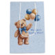 Cute Tan Teddy Bear with Balloons Boy Baby Shower Medium Gift Bag