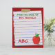 Personalise this cute custom letterhead, "From The Desk Of", with any name on this fun, torn, lined notebook paper taped to a red background with ABC in red letters and a red apple illustration on the bottom. Or, just leave out the text entirely. Easily change the background colour and text style and colour. Just click on "Customise it" to change the colour. Makes a great custom gift for teachers. Personalise some for your teacher today! Great for Back To School!