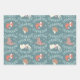 Cute Teal Blue Woodland Animal Christmas Wrapping Paper Sheets