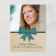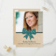 Sweet and charming Cute Bow Graduation Postcard featuring a whimsical polka dot turquoise bow and faux paper texture background. Perfect for announcing your graduate news and inviting friends and family to celebrate the accomplishment. Easy to customise, simply add a photo and your party details in the text fields provided.