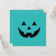 Cute teal and black jack o lantern carved pumpkin face spooky scary funny modern Halloween greeting card /Trick or Treat invitation.