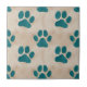 This tile features a repeating pattern of teal paw prints on a neutral background. It's ideal for pet lovers or anyone looking to add a touch of playful charm to their home decor. The design is simple yet eye-catching, making it versatile for various applications, from backsplashes to accent pieces. This tile is durable and easy to clean, suitable for both residential and commercial spaces.