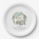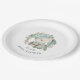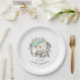 An adorable vintage style illustration of a teddy bear wearing a chequered hat and bow tie with suspenders. The bear is surrounded by a floral leafy wreath making a lovely theme for a baby shower to welcome a baby boy. The illustration features a lovely soft palette and hand drawn textures creating a playful scene with magical whimsy. Personalise the text template with your guest of honour's name or other desired text. Note: these paper plates are available in 2 sizes; 7 inch diameter and 9 inch diameter. Choose the size that best suits what you will be serving on them.