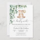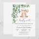Celebrate the upcoming arrival of Baby Elizabeth with this adorable teddy bear baby shower invitation. Featuring a whimsical bear holding a balloon surrounded by soft greenery, this charming design sets the perfect tone for a joyful gathering. The playful "we can bearly wait- phrase adds a sweet touch, while the elegant layout ensures your event details shine. Ideal for parents-to-be, this invitation blends cute illustration with modern style, making it a memorable keepsake for guests. Perfect for baby showers, gender-neutral themes, and nature-inspired celebrations.