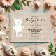 White teddy bear with a tan, diamond argyle background to celebrate a gender neutral themed baby shower. Templates created for you.