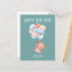 This design features a cute teddy bear holding balloons on a grey-green background and vibrant text "Happy New Year 2024". The text can be customised. This postcard is the perfect choice to spread joy this New Year!