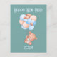 Cute Teddy Bear Balloon New Year Grey Green Postcard
