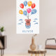 Cute Teddy Bear Balloons Boy Birthday Party Poster. A cute drawing of a teddy bear with blue, red and yellow balloons for a boy. Add your name.