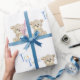 Cute Teddy Bear Blue it’s Twins Baby Shower Wrapping Paper