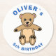 Cute Teddy Bear Blue Kids Birthday Party Round Paper Coaster