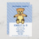 Cute Teddy Bear Blue Polka Dot Kid`s Birthday Invitation
