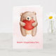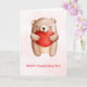 Greeting card with a cute watercolor illustration. A brown teddy bear carrying a big red heart.