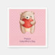 Cute Teddy Bear Carrying a Red Heart Valentine's Napkin
