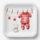 Cute Teddy Bear Clothesline Red Baby Shower Paper Plate