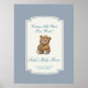 Cute Teddy Bear Dusty Blue Custom Baby Shower Sign