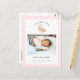 Cute watercolor Teddy bear baby girl Birth announcement postcard with photo and Birth stats with pink and white gingham border.