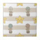 Soft neutral teddy bear pattern ceramic tile with hot air balloons and stars in warm beige tones. Calm, dreamy aesthetic with a gentle nursery feel. Ideal for baby boys, baby girls, new parents, and minimalist nursery lovers.