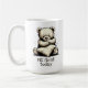 This sweet coffee cup is a lovely thing to look at first thing in the morning. This cute and vulnerable teddy bear is hugging a pillow and mentally preparing for the day. 'Me first today.' You can easily change the wording on the mug to something more personal for you. Or add your name or a loved one's name and give this as a gift. I created this mug as a reminder to treat yourself with love and compassion. And a large amount of coffee or tea doesn't hurt either!