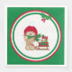 Cute Teddy Bear in Winter Hat Sled of Gifts Napkin