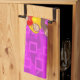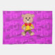 Cute Teddy Bear on Pink Geometric Tea Towel