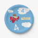 Cute Teddy Bear Pilot Custom Name and Age Birthday Paper Plate