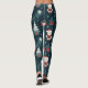 Cute Teddy Bear & Santa on Dark Green (1) Leggings