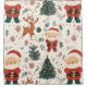 A charming Christmas pattern shower curtain featuring adorable teddy bears dressed as Santa, festive gift boxes, decorated Christmas trees, candy canes, ornaments, and snowflakes on a white background. This cozy holiday design blends warm, hand-drawn illustrations with a playful winter feel.