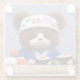Cute Teddy Bear Sushi Chef Glass Coaster