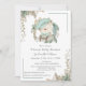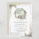 A sweet virtual baby shower invitation to welcome a baby boy in a new way by conducting the shower virtually online. This is a wonderful solution when family and friends are unable to gather in person, whatever the reason. This cute vintage inspired design has an adorable teddy bear wearing a chequered hat and matching bow tie. He is surrounded by a floral leafy wreath with antique floral corner embellishments. The text template has an easy-to-read layout that you can edit as you wish, add or remove lines of text and drag the text in place if you need to reposition it. Personalise with your baby shower details. There is ample room on the back of the invitation to add any additional instructions if you wish to add any additional text.