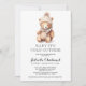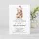 Whimsical cute teddy bear winter baby shower invitation in a gender neutral style, with the saying: baby it's cold outside. Adorable watercolor teddt bear in winter hat and scarf.