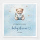 Unleash the charm of your boy baby shower party with the enchantingly designed napkins, graced with the illustration of an adorable baby bear. The bear, tenderly cradling blue and ivory balloons, descends from a sky blue canvas, evoking a sense of whimsical innocence. This charming 'Baby bear with balloons' napkin design perfectly captures the spirit of joyous celebrations, making it an unparalleled choice for creating an eternal memory of your special occasion.