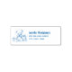 Name and address stamp with a cute illustration featuring a Victorian style teddy bear. Wearing a fancy red bow. Drawn in a a cute old fashioned vintage style. Red and blue pastel Christmas presents surround this warm-hearted bear.