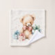 Towel set with a cute illustration featuring a Victorian style teddy bear. Wearing a fancy red bow. Drawn in a a cute old fashioned vintage style. Red and blue pastel Christmas presents surround this warm-hearted bear.