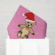 Cute Teddy Bear with Santa Hat Pink Christmas Tissue Paper