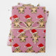 Cute Teddy Bear with Santa Hat Pink Christmas Wrapping Paper Sheet
