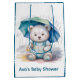 Cute Teddy Bear With Umbrella Boy Baby Shower Medium Gift Bag