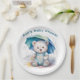Cute Teddy Bear With Umbrella Boy Baby Shower Paper Plate