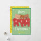 This cute teddy bears in Christmas pyjamas, Christmas card has a pattern of three toddler teddies in Christmas baby gros surrounded by snowfakes. The words Merry Christmas are in white on a green background. The back is bright yellow with a candy canes pattern. Names can be personalised A fun and colourful card for a child, family, friends or loved ones.