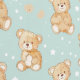 Cute Teddy Bears White Stars on Soft Green Wallpaper