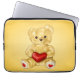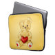 Cute teddy laptop sleeve with a cute fluffy yellow teddy holding a red heart.