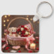 Cute Teddy Rose Basket Romantic Valentine Heart Key Ring