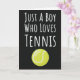 Keywords: Cute tennis cards for kids boys sports sporty, Just a boy who loves tennis, Halloween, Thanksgiving, Christmas, Xmas, ornament, presents, themed, unique, gag, related, lover, stocking stuffer, novelty items, joke, humour, birthday, for him, boys, cute, son, grandson, kids, back to school, quote, young athlete card.