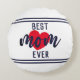 Elegant Mothers day Round Pillow featuring a cute saying that reads "Best Mum Ever" with heart, This cute Round Pillow is perfect for your daughter for Mother's Day and it can be use it all year.! A pretty unusual Mother's Day gift... probably different from what she's expecting. you’re gonna love this! So how's about a nice surprise?