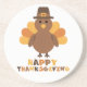 Celebrate thanksgiving with this funny happy cute turkey wearing a pilgrim hat and wishing a happy thanksgiving to your hosts.