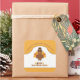 Blend the fun fall colours and fun design of the illustration to make it perfectly fitted for offering Thanksgiving leftovers. You can add a little thanksgiving message of your own. The smiling turkey has bright tail feathers and a pilgrim hat that adds some chic and holiday spirit in your feast.