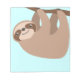 Cute cartoon image of a three-toed sloth, hanging on a branch. Customise the background colours, and personalise however you like!