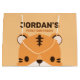 This design features cute tiger cartoon illustration with personalised name in brown modern sans serif font style on pastel orange background.