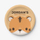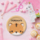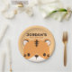 This design features cute tiger cartoon illustration with personalised name in brown modern sans serif font style on pastel orange background.