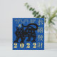 Tiger Design stylised and inspired by traditional Chinese papercut in black with greeting in Chinese and English around the design. Design on square flat card with dark blue background for water element. Perfect for Chinese New Year of the Tiger 2022 or Birthday (people born in Tiger Year).